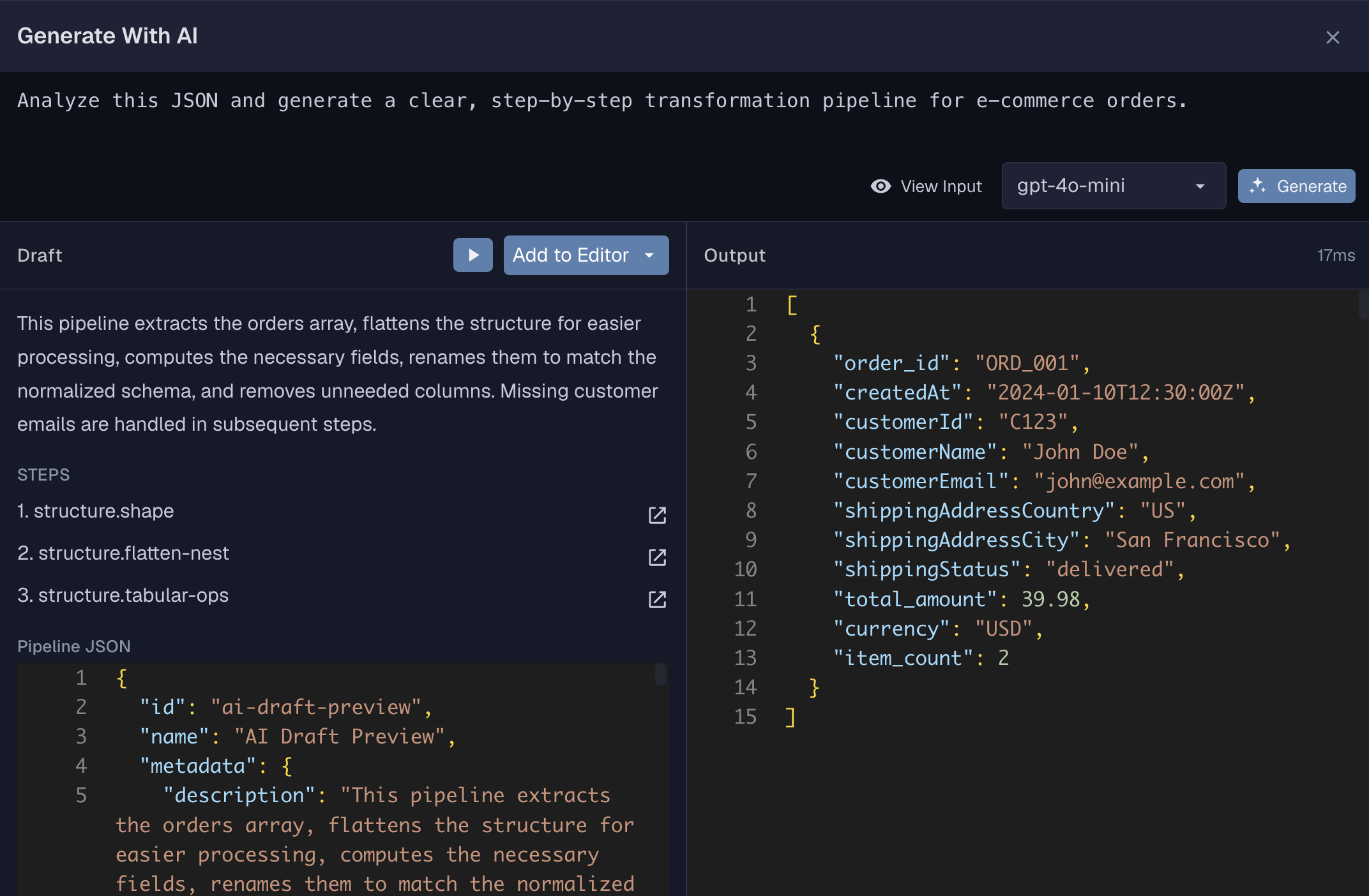 Use the example panel below to open this sample input and generated workflow directly in the editor.