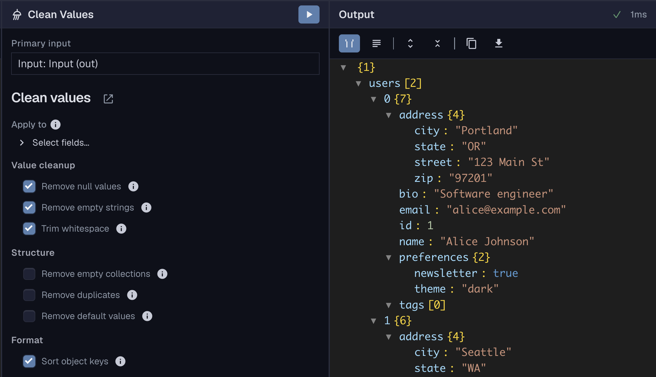 This pattern works well for API response cleanup and can be reused across similar JSON workflows.